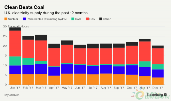 2017年,英国风能、太阳能与核能联合发电量首次超过煤炭和天然气。