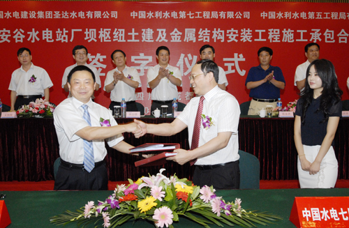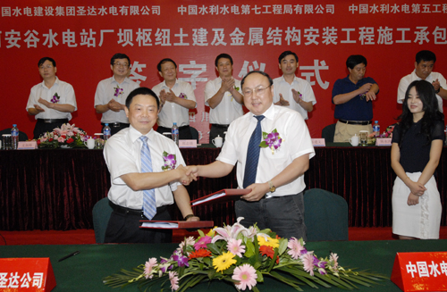 7月22日,中国水电四川公司控股开发的装机容量最大项目——大渡河安谷水电站厂坝枢纽土建及金属结构安装工程施工合同签字仪式在成都举行。中国水电七局和中国水电五局中标该合同,合同总金额达17亿元。其中,水电七局中标合同金额约13.7亿元,水电五局中标合同金额约3.3亿元。