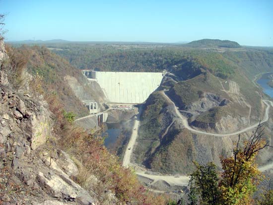 双沟水电站位于吉林抚松,第二松花江上游支流松江河上,为松江河梯级水电站第二级电站。双沟水电站是松江河梯级电站开发中装机容量最大的水电站,也是东北电网建设的重要工程项目。枢纽主要由混凝土面板堆石坝、岸坡式溢洪道、引水系统及发电系统组成,最大坝高110.50m。