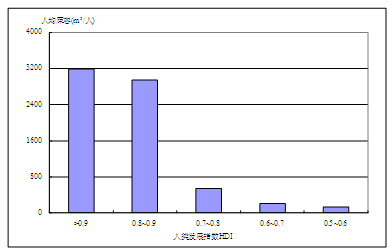 下图是联合国有关机构的一个调查结论。人类发展指数(一个包括GDP和教育、医疗等方面的综合评价指标)为一介于0和1之间的数,数值越接近于1表示人类发展水平越高。全球50余个国家2007年的人类发展与大坝水库发展数据计算结果显示,HDI大于0.9的国家,人均库容拥有量为3184立方米,HDI介于0.8~0.9的国家,人均库容拥有量2948,HDI介于0.7~0.8的国家,人均库容拥有量541,HDI介于0.6~0.7的国家,人均库容拥有量208,HDI介于0.5~0.6的国家,人均库容拥有量仅为125 (图1)。
