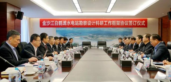 会谈结束后,三峡集团与中国电建举行金沙江白鹤滩水电站勘察设计科研工作框架协议签订仪式,王琳晏志勇出席并见证协议签署。