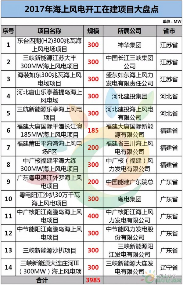 2017年已经过去,风哥整理了过去一年,我国核准和开工在建的海上风电项目。老规矩,表格呈现,一目了然!