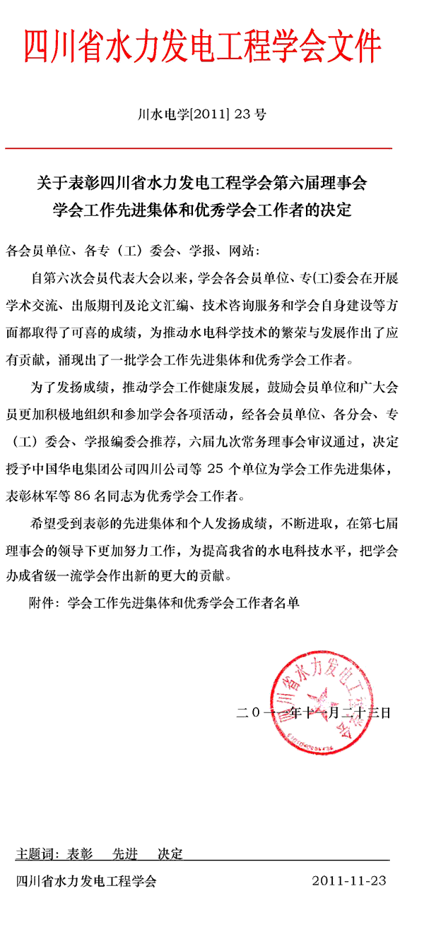 四川水电学会第七次会员代表大会隆重举行[图]