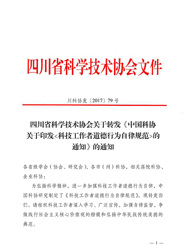 四川省科学技术协会关于转发《中国科协关于印发〈科技工作者道德行为自律规范的通知〉的通知