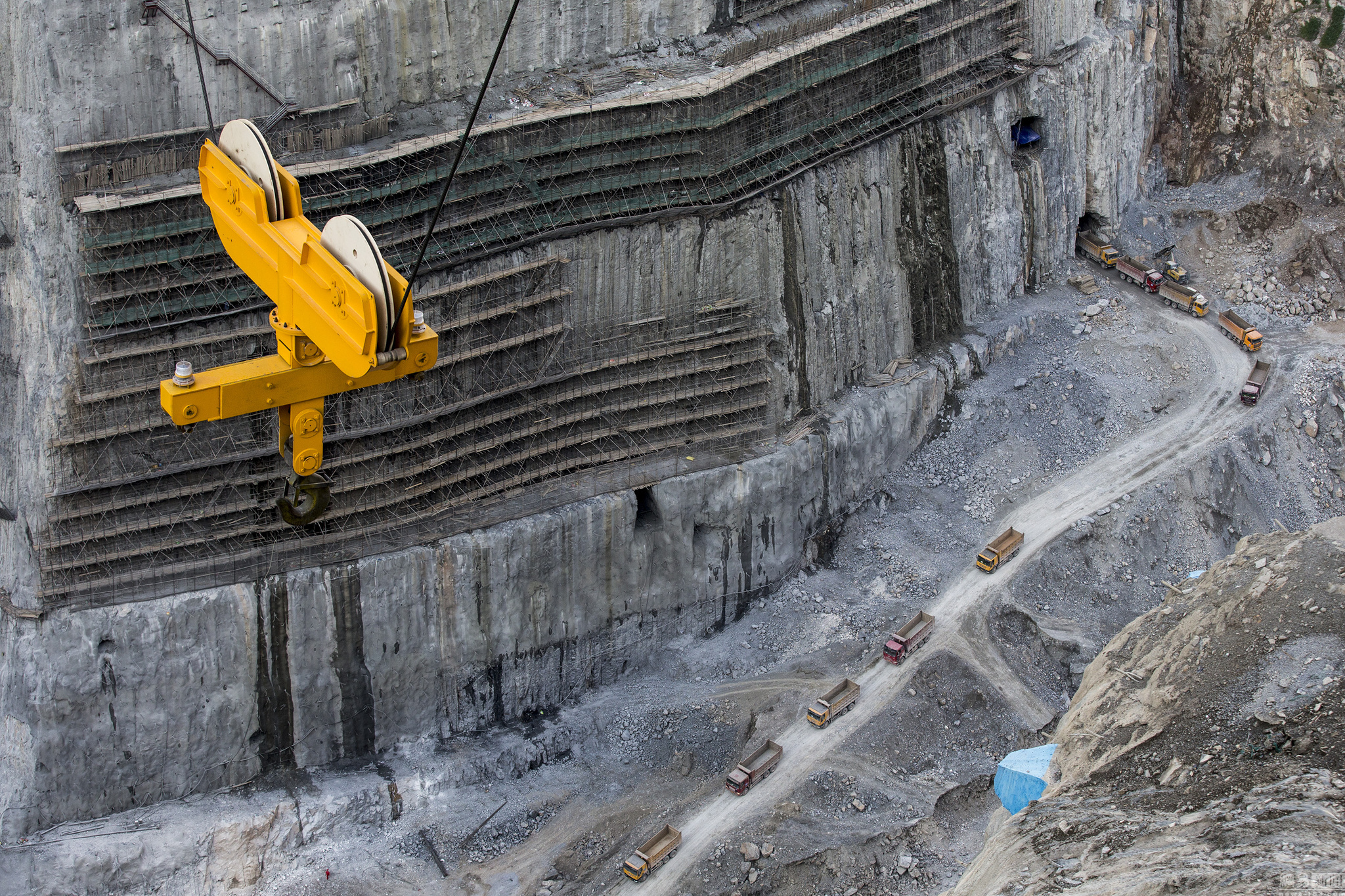 2016年7月16日,建设中的乌东德电站,装卸车运送爆破后的山体碎片。
