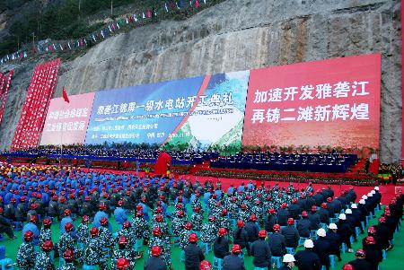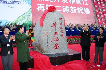 | 雅砻江锦屏一级水电站 锦屏一级水电站位于四川省凉山彝族自治州盐源县和木里县境内,是雅砻江水能资源最富集的中、下游河段5级水电开发中的第一级,其下游梯级为锦屏二级、官地、二滩和桐子林水电站,其中二滩水电站(330万kW)已于1999年建成发电,官地和桐子林水电站已完成初步设计并通过审查,锦屏二级开展了前期勘测设计工作。中下游河段开发条件和前期工作基础较好,二滩电站的建成为滚动开发雅砻江梯级电站打下了良好的基础。  | 雅砻江卡拉至江口河段长412 km,天然落差930m,干流可开发水电装机容量约1200万kW,占雅砻江干流可开发容量的50%,水能资源富集,开发条件良好,是四川省水电重点开发河段。锦屏一级水电站是该河段的龙头梯级。 锦屏一级水电站坝址以上流域面积10.3万km2,占雅砻江流域面积的75.4%。坝址处多年平均流量为1220m3/s,多年平均年径流量385亿m3。锦屏一级水电站以发电为主,兼有防洪、拦沙等作用。水库正常蓄水位1880m,总库容77.6亿m3,调节库容49.1亿m3,为年调节水库,多年平均流量1200m3/s。。水库淹没耕地7628亩,淹没搬迁人口3641人。电站装机容量360万kW,发电设备年利用小时数4836h,年发电量174.10亿kW·h。锦屏一级水电站大坝为薄壁双曲拱坝,最大坝高305米,为世界第一高坝。 锦屏一级水电站位于四川省凉山彝族自治州盐源县和木里县境内,是雅砻江干流下游河段(卡拉至江口河段)的控制性水库梯级电站,其下游梯级依次为锦屏二级(440万kW)、官地(180万kW)、二滩(330万kW,已投产)、桐子林水电站(40万kW),下距河口约358km。 枢纽建筑由挡水、泄水及消能、引水发电等永久建筑物组成,其中混凝土双曲拱坝坝高305m,为世界第一高拱坝。建设总工期9年3个月,工程静态总投资183.7亿元,总投资232.3亿元。水库正常蓄水位1880m,死水位1800m,总库容77.6亿m3,调节库容49.1亿m3,具有年调节性能, 装机容量3600MW,是雅砻江下游河段的龙头电站,多年平均发电量174.1亿kW·h,计入增加二滩水电站正常运行年份的发电量后为184.22亿kW?h。电站以发电为主,兼具蓄能、蓄洪和拦沙作用,是川电外送的主要电源点之一。 目前,锦屏一级水电站已经国家正式批准立项,可行性研究报告已编制完成并通过审查。计划2005年正式开工,2012年首台机组发电,2013年竣工。 相关链接: 锦屏一级水电站建设工程开工 在成功建成二十世纪中国最大的水电站——二滩水电站的雅砻江上,又传来振奋人心的喜讯——寄托着几代水电人希望与梦想的锦屏一级水电站正式开工。 2005年11月12日上午9:30,在位于四川省凉山州盐源县境内的1600米的锦屏山上,由四川省人民政府和国家开发投资公司共同主办,二滩水电开发有限责任公司承办,举行了雅砻江锦屏一级水电站开工典礼。国务院副总理曾培炎同志对雅砻江流域水电开发非常关心,对锦屏一级水电站的开工建设提出了总体的希望和要求。中共四川省委书记、省人大常委会主任张学忠同志在数千名建设者如潮的掌声中宣布雅砻江锦屏一级水电站开工。省委副书记甘道明同志在开工典礼上讲话;国家开发投资公司总裁王会生同志为开工典礼致词;副省长王怀臣同志主持典礼;四川省人民政府秘书长李洪仁同志和国家有关部委、四川省有关部门以及参建企业、单位的负责人或代表出席了开工典礼;二滩水电开发有限责任公司董事长王文泽、总经理陈云华出席了开工典礼,并分别为大会致辞和向大会汇报雅砻江锦屏一级水电站建设前期工作的情况。 四川省投资集团公司董事长黄顺福、中共凉山州委书记吴靖平等同志也在开工典礼上致辞,对雅砻江锦屏一级水电站的开工表示了热烈祝贺。 在隆隆轰鸣的礼炮声中,在彩带纷飞的大会会场,张学忠书记和王会生总裁等一道为“锦屏水电站开工纪念石”揭幕。 锦屏一级水电站总装机容量360万千瓦,静态投资196.81亿元。2014年电站竣工后年均发电166.2亿千瓦时,其中50%电量送往华东地区。电站305米的世界第一高拱坝和49.1亿立方米的调节库容,赋予锦屏一级水电站年调节能力,使之成为雅砻江流域整体开发战略中承上启下的关键性控制工程。 锦屏一级水电站建设不仅能够为四川经济发展和社会进步提供宝贵的能源支撑,其建设本身也将发挥巨大的投资带动效应,并有力促进四川省装备制造业的发展。 素以不畏艰难、连续奋战的精神和作风著称的二滩人正又一次抖擞精神,重背行囊,在千里雅砻江上以“快马加鞭未下鞍”的精神状态,续流域开发,铸水电辉煌。 雅砻江锦屏一级水电站开工典礼于2005年11月12日在锦屏山隆重举行 中共四川省委书记、省人大常委会主任张学忠同志与国家开发投资公司总裁王会生同志 等共同为“锦屏水电站开工纪念石”揭幕 锦屏一级水电站所遇到的“世界难题” ●施工布置十分困难。锦屏一级枢纽地处锦屏峡谷河段,地势陡峻,施工布置难度为国内外罕见。 ●高边坡开挖难度极大,边坡开挖难度达到世界级水平。 ●拱坝设计难度大。混凝土双曲拱坝高305m,为世界最高拱坝,其设计技术难度为世界级。 ●大跨度地下洞室的设计难度大。地下厂房规模巨大,地下洞室地应力高,地下水丰富,地质条件差,设计和施工难度很大。 ●难以驯服的突涌水问题。 锦屏一级电站位于著名的锦屏大河湾上。雅砻江由北向南至小金口,受锦屏山阻挡,折向东北,在九龙河口附近又骤然向南流至巴