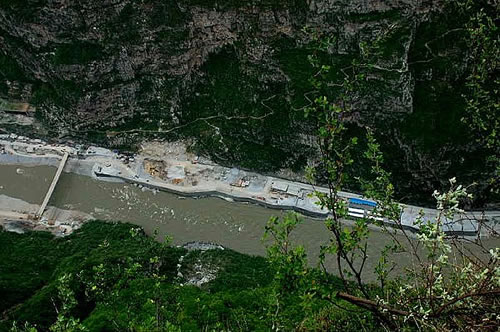 绝壁下的长河坝电站工地