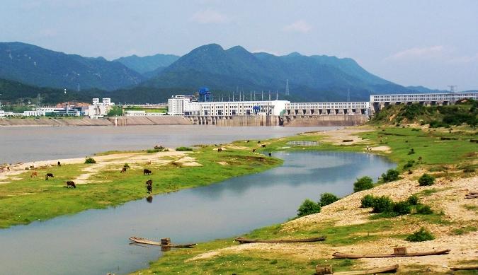万安水电站采取“工程一次建成,水库分期蓄水”的建设方案。电站为Ⅰ等工程,主要建筑物为Ⅰ级,按照千年一遇洪水设计,万年一遇洪水校核,可能最大洪水保坝。水库最终规模设计蓄水位100m,电站装机50万KW(5×10万KW)。目前,按初期方式运行,水库正常蓄水位96m,电站装机40万KW(4×10万KW),设计多年平均发电量11.5亿KWh。
