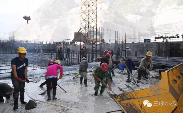 ▲左岸引水洞进水塔底混凝土浇筑清基施工
