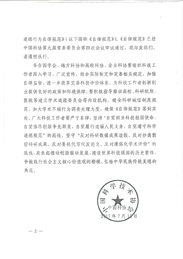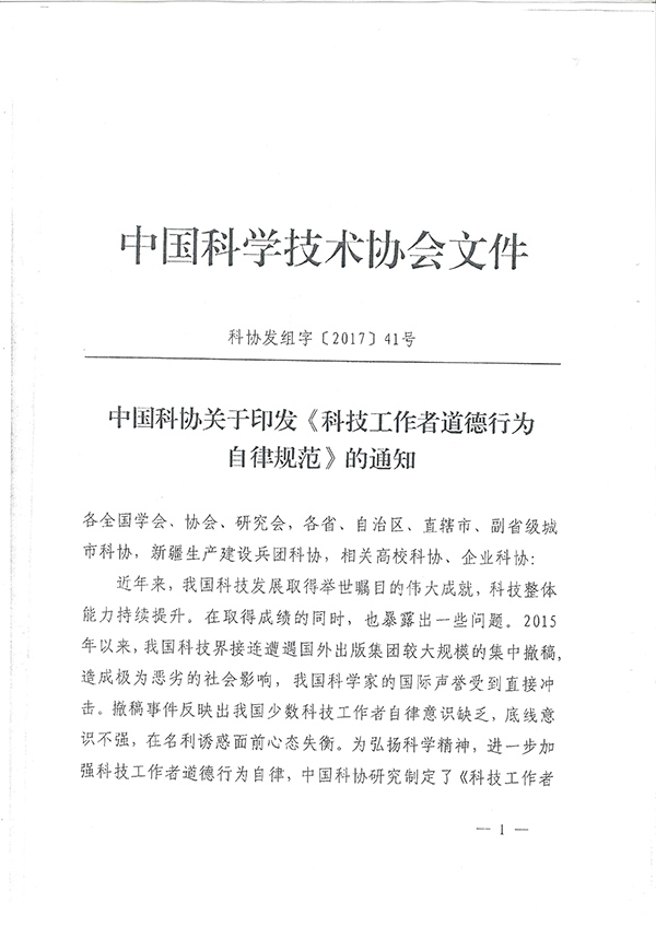四川省科学技术协会关于转发《中国科协关于印发〈科技工作者道德行为自律规范的通知〉的通知