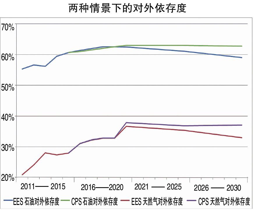 4 在能源系统优化下,油气替代和消费结构重构将使对外依存度低于预期。