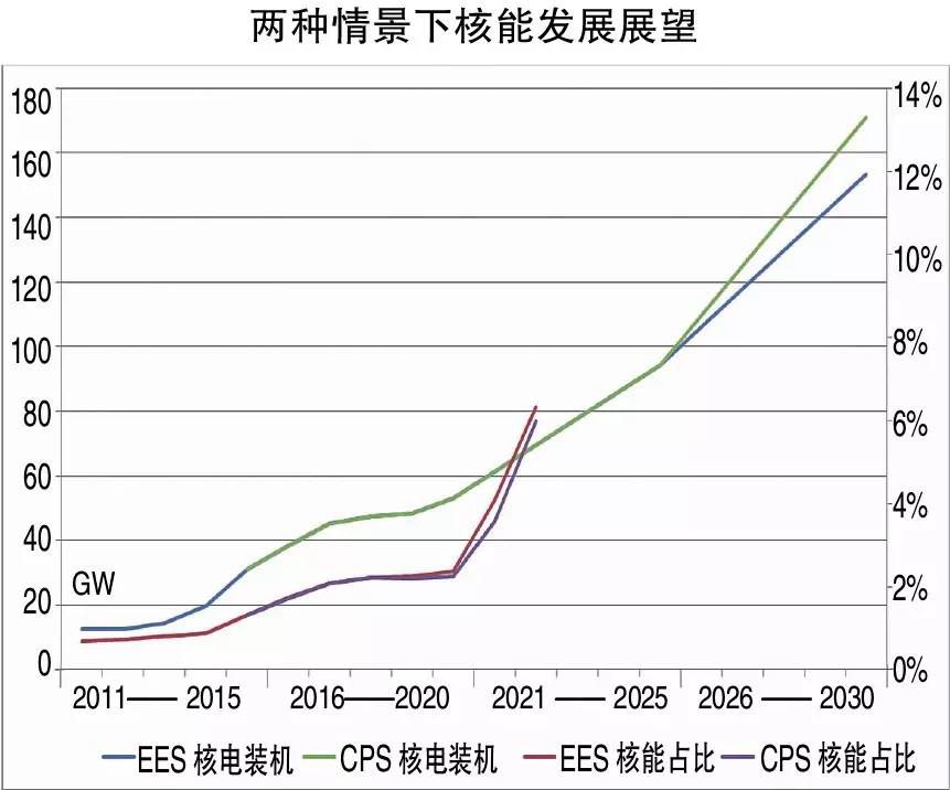 而EES情景下的核电规模为153GW,核能占比6.3%。我们认为,后者的核电装机增长相对稳健,但是2015年必须起步,2020-2025年为快速建设期(每年投建8-10台机组)。但是,如何形成与上述核电发展规模相适应的核电综合实力、民族品牌和核电文化,是重大挑战。