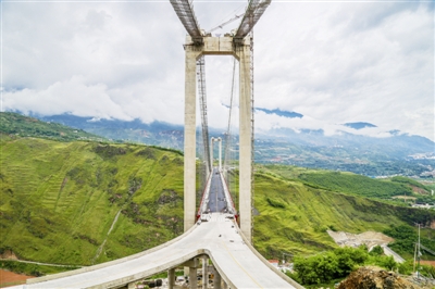 总投资约2.6亿元的白鹤滩金沙江大桥由三峡集团投资修建,大桥将四川省凉山州宁南县和对岸的云南省巧家县连为一体,极大方便当地群众出行。图为金沙江大桥全貌。