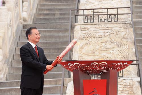 温家宝点燃残奥会圣火盆并宣布火[图]