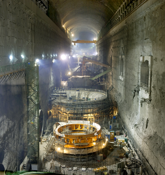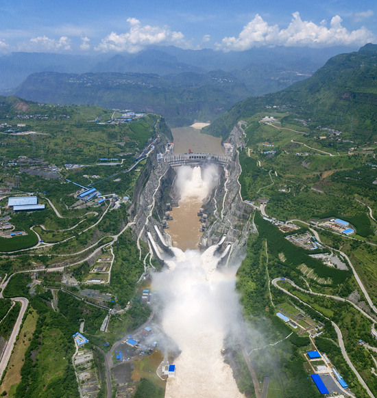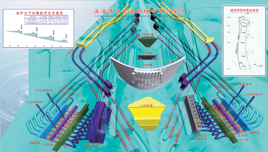 相比“四肢发达”的重力坝,300米级坝高、双曲拱坝设计的溪洛渡大坝就像一个高挑、柔韧、聪明的美少女战士,伫立在川滇两省交界的金沙江上游。复杂艰苦的环境让她挑战了多项世界之最——最大拱坝泄洪功率、最大地下电站、最长地下厂房、最大地下洞室群等。